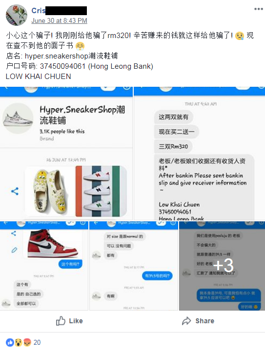 不过还是要提醒提醒,就算可鞥对方没有被列入这个名单内也不代表对方不是诈骗分子,可能是还没有被举报而已。其实这些诈骗主要发生在社交媒体比如:Facebook, Instagram, Wechat等等,因为这些平台没有像Lazada, Shopee, 11 street等等中间商管制,所以是完全没有保障的,对方可以一收到钱就跑人。