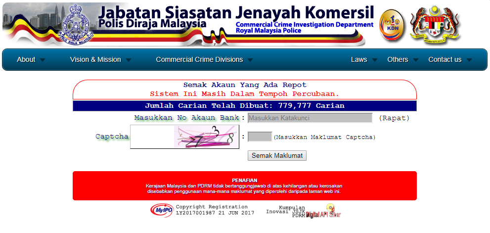 因为如果卖家是诈骗分子,被举报过的Bank Account会被列入Jabatan Siasatan Jenayah Komersil里的,只要书录卖家银行户口号码就能查出。所以大家可以通过这个网站去查询。
