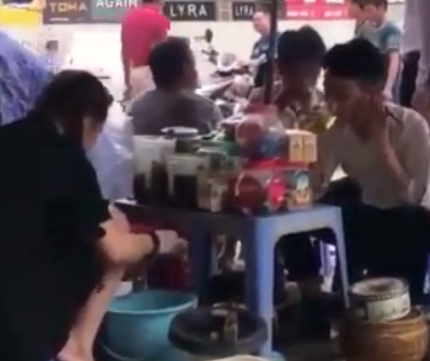 ▼从视频中可看到,这个简陋的饮料档口就设在路边但生意却好到不行,档口前都坐满了人。