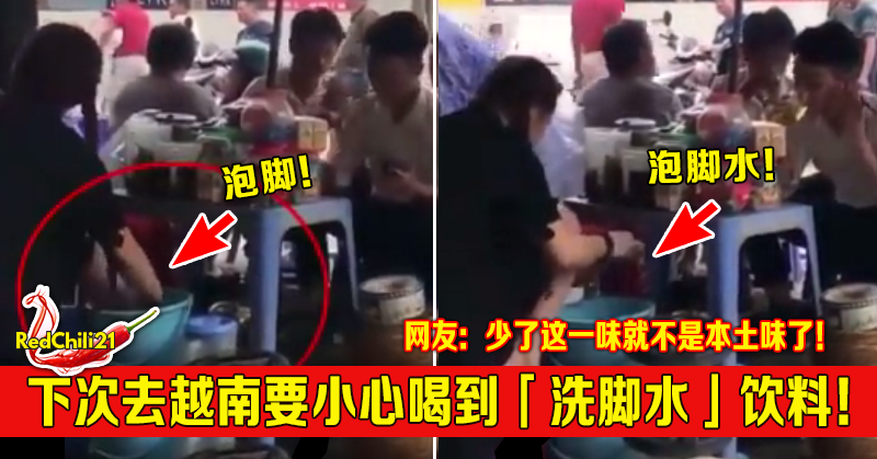 ▼这时你可以看到客人喝完饮料后再拿起杯子让老板娘续杯,但没想到老板娘竟然把上一秒泡脚的水做成饮料给客人喝。