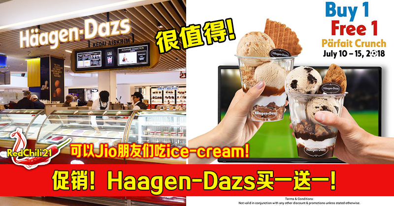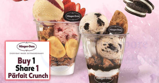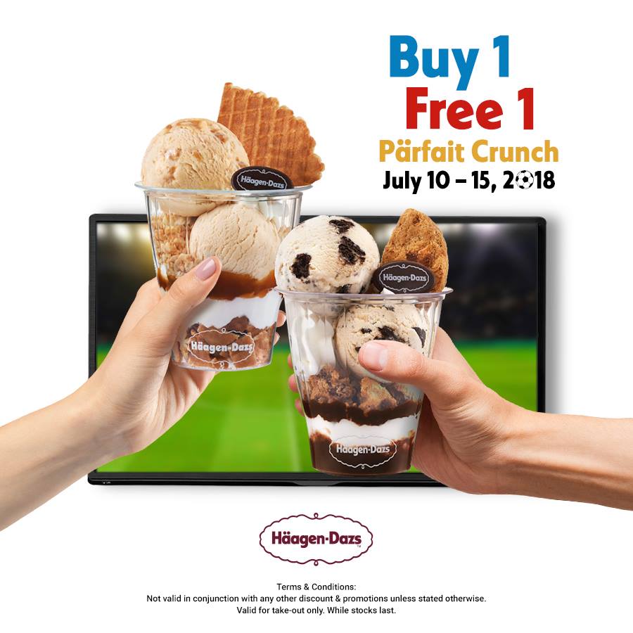 优惠条件:凡是购买Häagen-Dazs Parfait Crunch Cups就能够享有免费的雪糕一个,只限Take away。