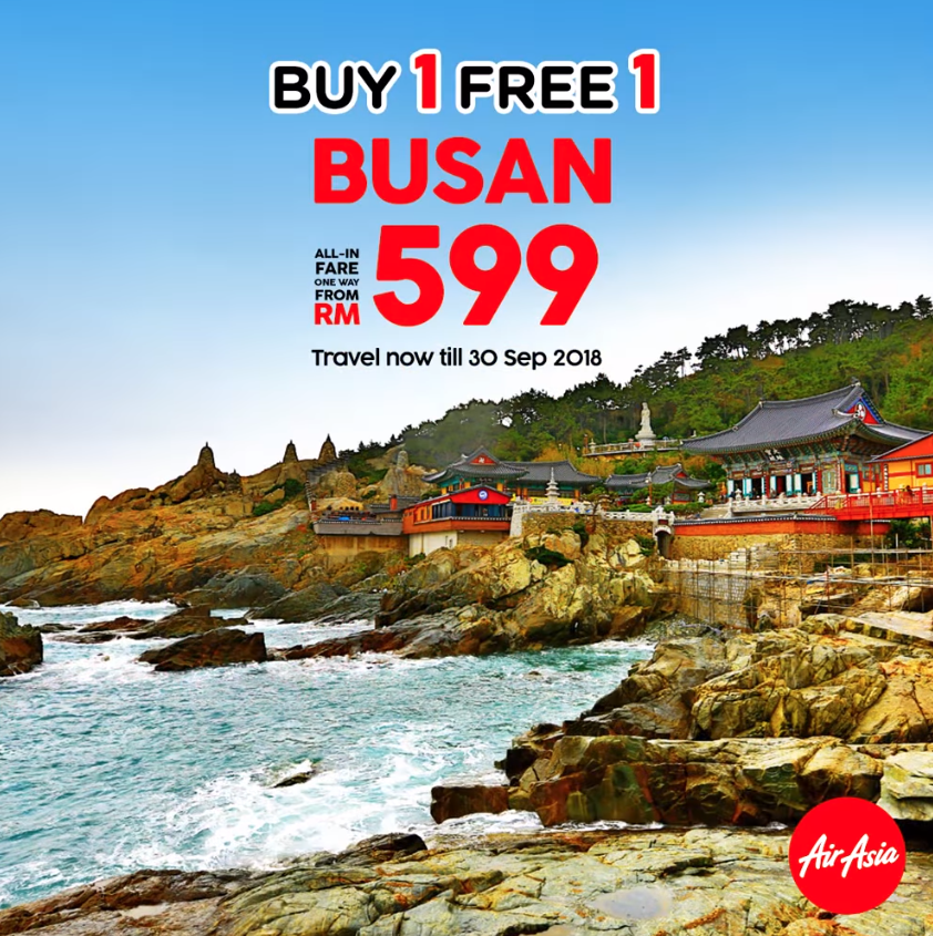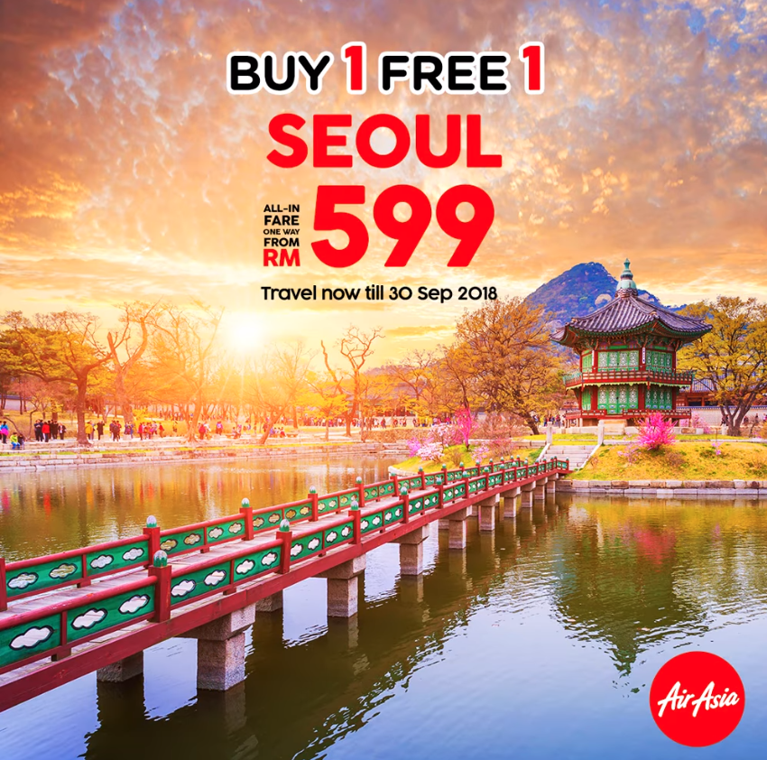 AirAsia周四疯狂大促销又回来了!这次轮到了韩国机票大促销了,美眉可以跟姐妹安排一下到韩国看Oppa了!!