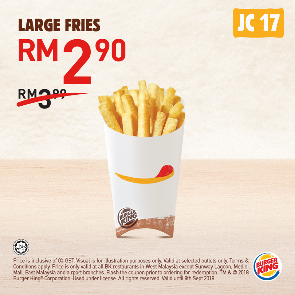 想要以更便宜的价格吃到 Burger King 吗?只要你下载以下的折扣券,就可以在限期内无限次使用了!!
