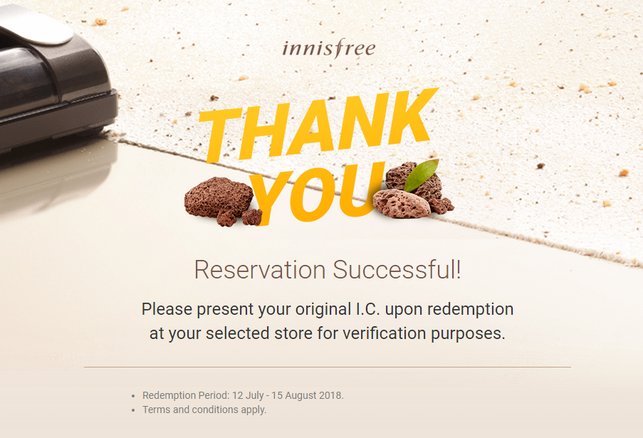 填完后就成功了,只要到你选定的Inneisfree分行,出示身份证就可以免费领取试用的面膜。