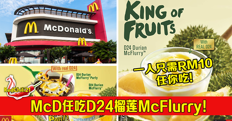McD任吃D24榴莲McFlurry!一个人只需RM10!
