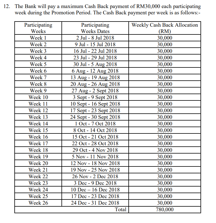 但用户必须知道的是每周大众银行只会派发RM30,000的现金回扣,所以银行是采用先到先得的方式来进行。