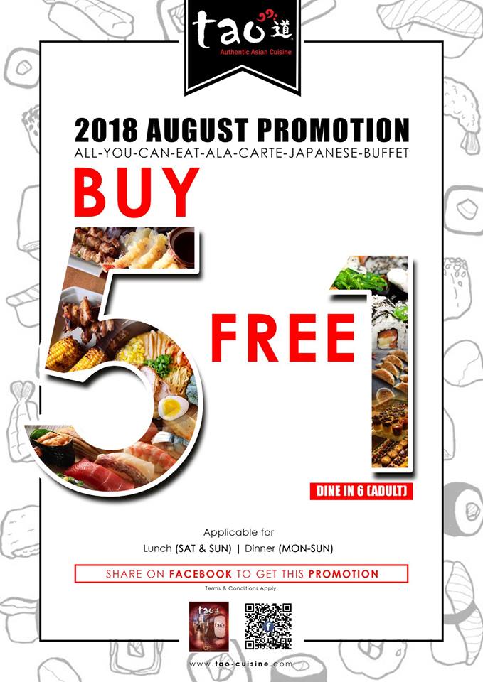 促销活动:TAO Authentic Buffet 日式Buffet 8月份买5送1