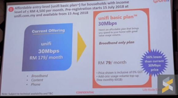 这个配套只限月入RM4500或以下的民众申请,民众将可以在7月15日起透过unifi网站申请和预订。Unifi Basic Plan将在2018年8月15日正式推出。