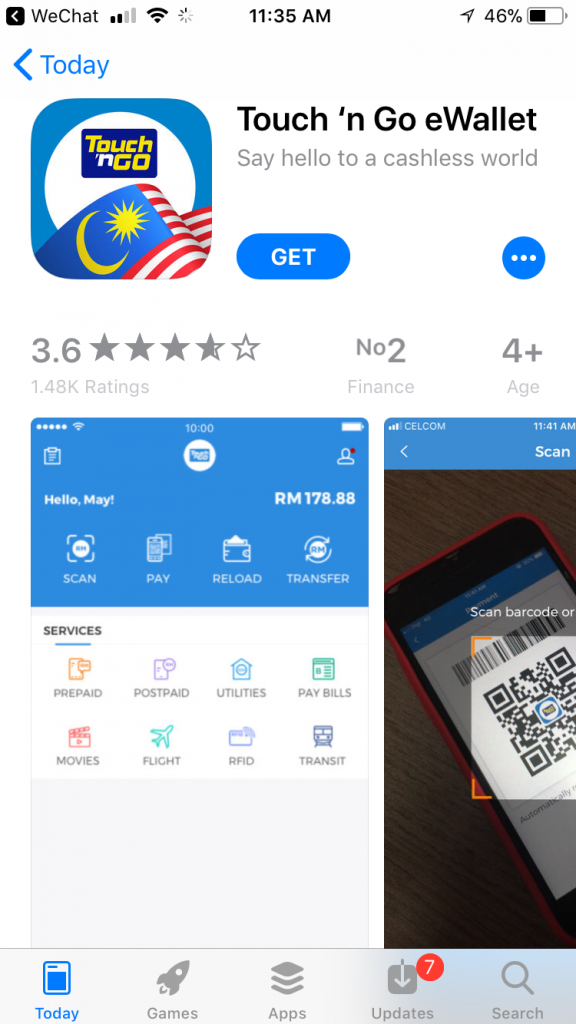 续wechat Pay送随机红包给用户后, 一触即通手机应用程序(Touch n Go App)也跟风送钱给用户。