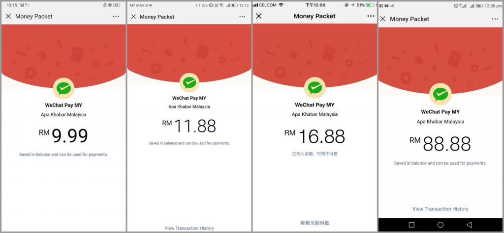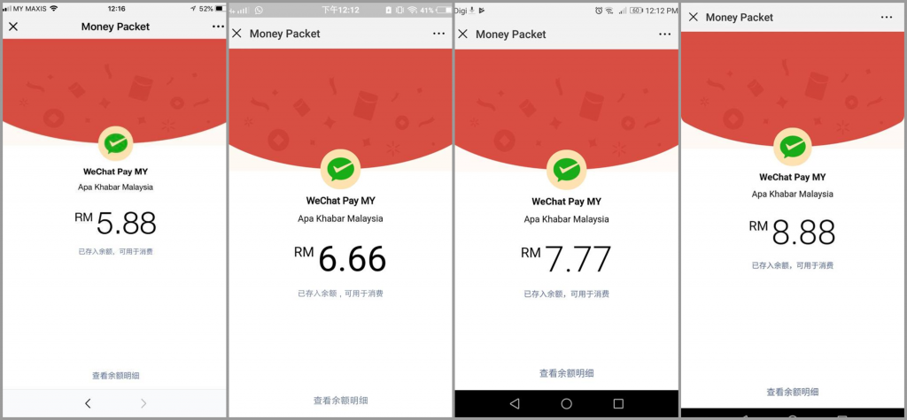 ▼由于官方公布的随机红包价值是从RM3.88只RM88.88,但网上没看到网民晒出RM20,RM30, RM40, RM50, RM60, RM70的红包。