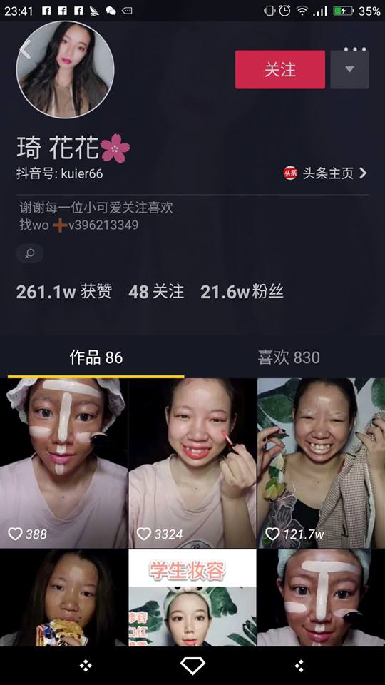 她到底是何方神圣呢?原来这位女孩叫做「琦花花」,是一位抖音直播主,还因为化妆技术太强被英国媒体注意到了。她这个视频在抖音已经超过121万点阅了,那话不多说,马上来看看咯。