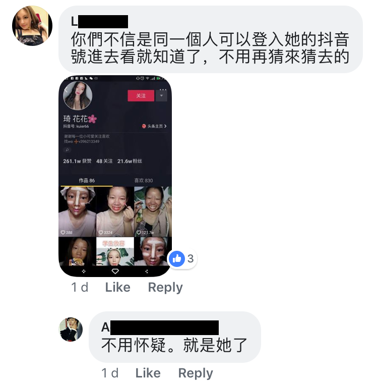 ▼网友还贴出女神的账号,让不相信的网友去求证。