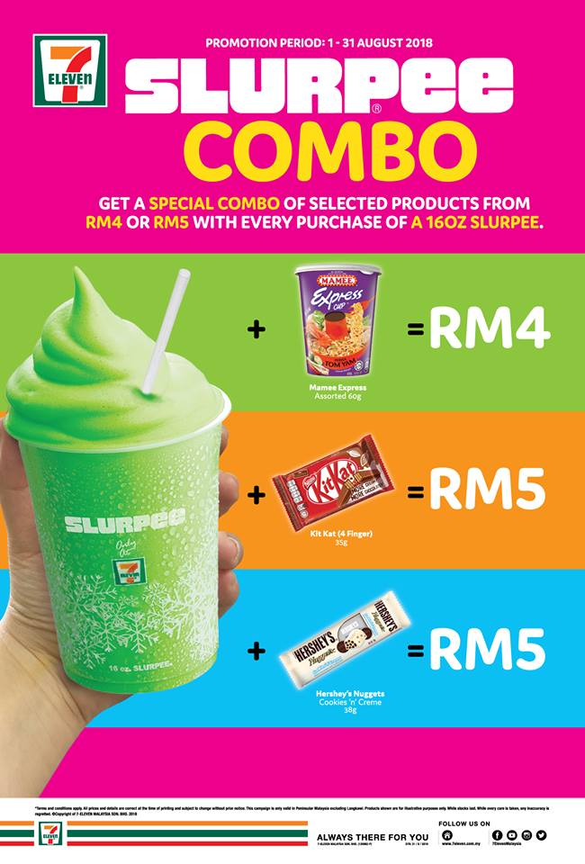 有3个不同的配套任你选择,最低才RM4一套呢!一杯水还有一个杯面也才RM4。想吃点巧克力的可以选择巧克力+Slurpee配套呢!
