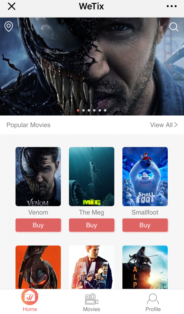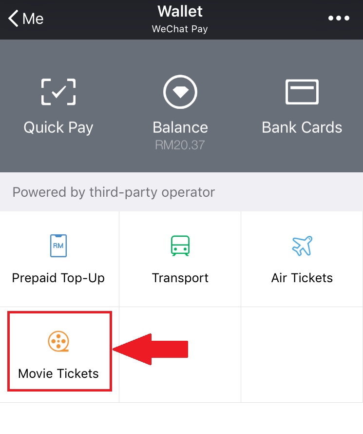 步骤1:打开你的微信钱包,然后点击“Movie Tickets”