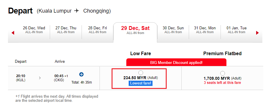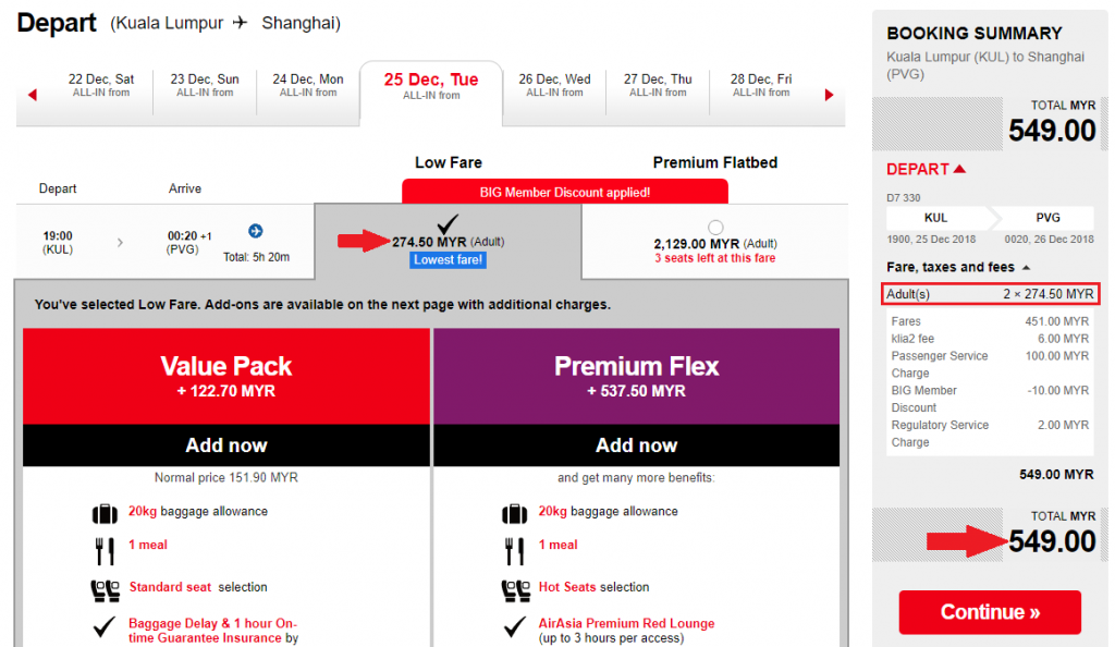 - Price shown on airasia.com booking page is after discount and inclusive of tax.