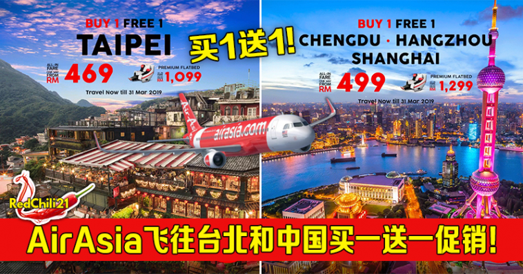 AirAsia周四疯狂大促销又回来了!这次轮到了台北和中国的机票大促销了!