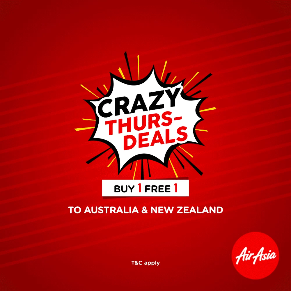 AirAsia飞往澳洲和新西兰买一送一促销!