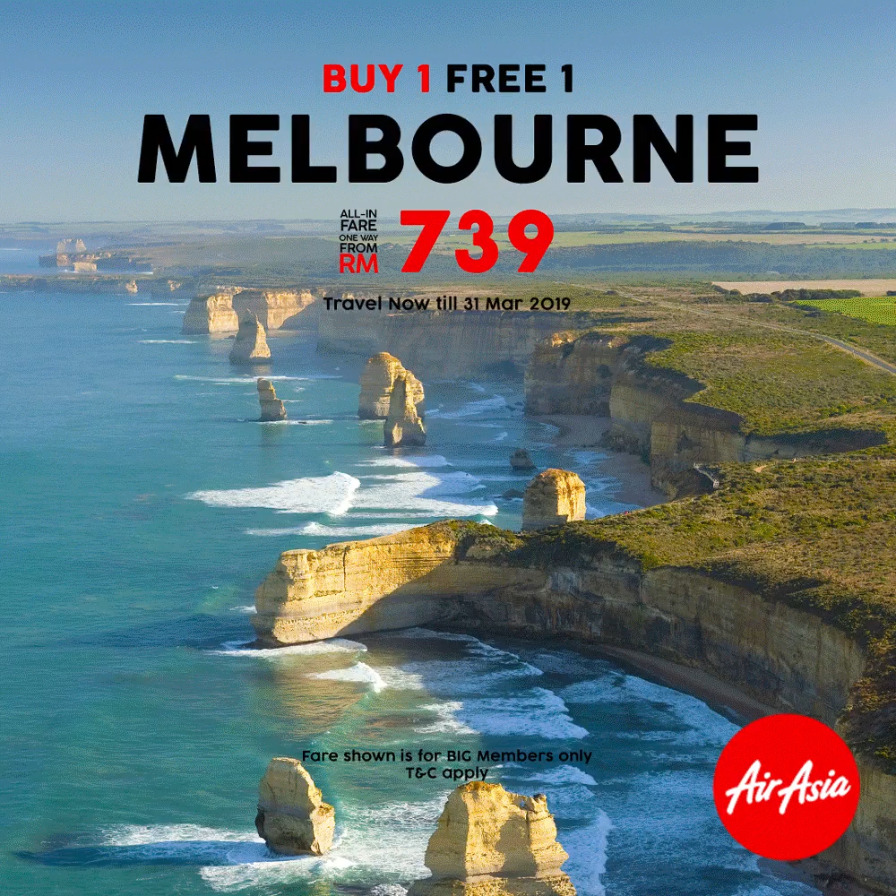▼墨尔本 (Melbourne) 机票买一送一从RM739起。