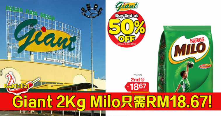 全马巨人(Giant)霸级市场将在本周推出相同商品第二件半价的优惠。