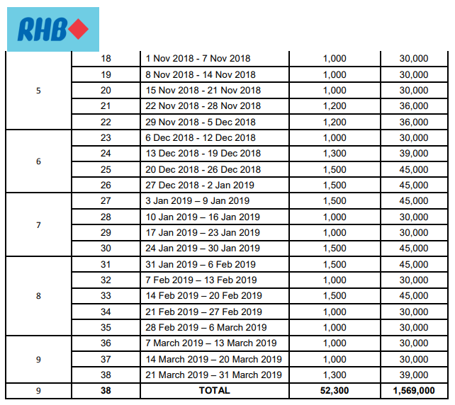 但用户必须知道的是每周RHB银行只会派发特定的现金回扣的数额,所以银行是采用先到先得的方式来进行。