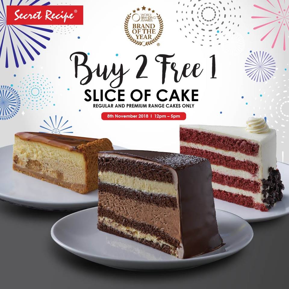 Secret Recipe将在11月8日推出蛋糕买二送一大优惠!这项活动只限中午12点至傍晚5点。凡是在促销期购买2片蛋糕就能获得1片免费蛋糕(赠送的蛋糕必须低于第一份选购的蛋糕价格或是同等价格)