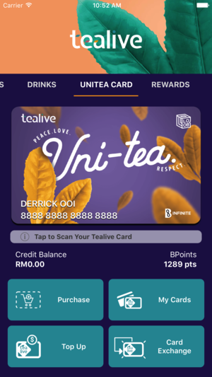 如果你觉得每次出门都要很多卡的话,你不妨可以试试下载Tealive的应用程式,只需要展示你的App同样的也能以RM1买到第二杯的Tealive饮料。