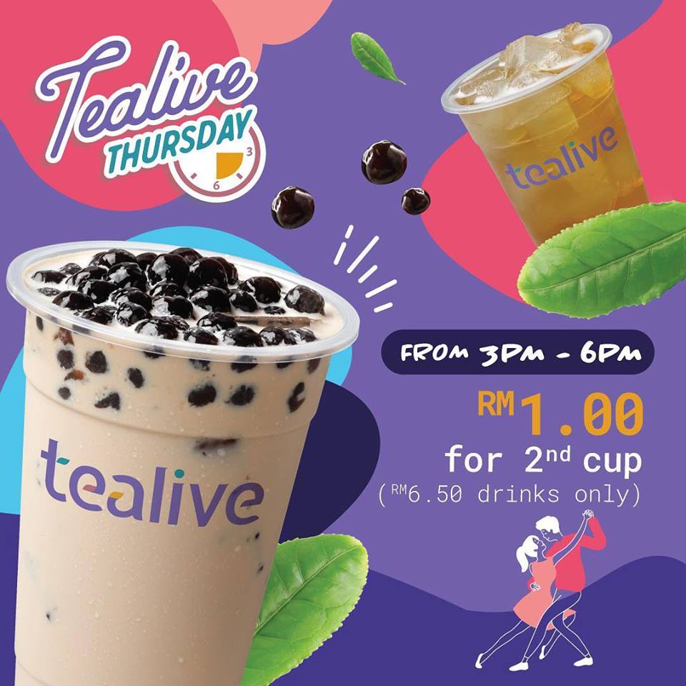你只要是Tealive的会员就有机会以RM1购买第二杯的Tealive 饮料而第一杯将会是原价RM6.50!
