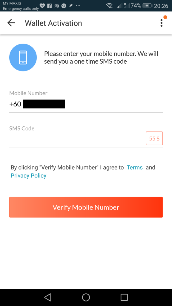▼步骤1:必须通过你的手机号码来激活Lazada Wallet (*旧用户可以跳过步骤)
