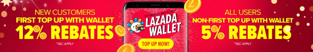 促销活动:Lazada Wallet加额送出高达RM50的购物券。