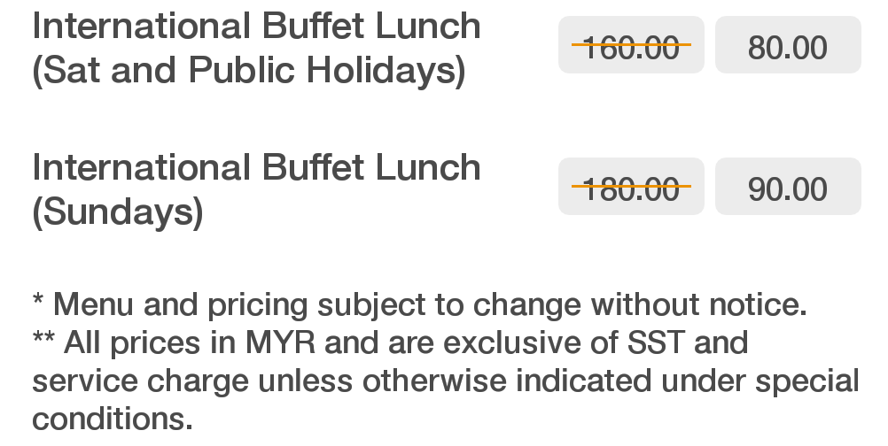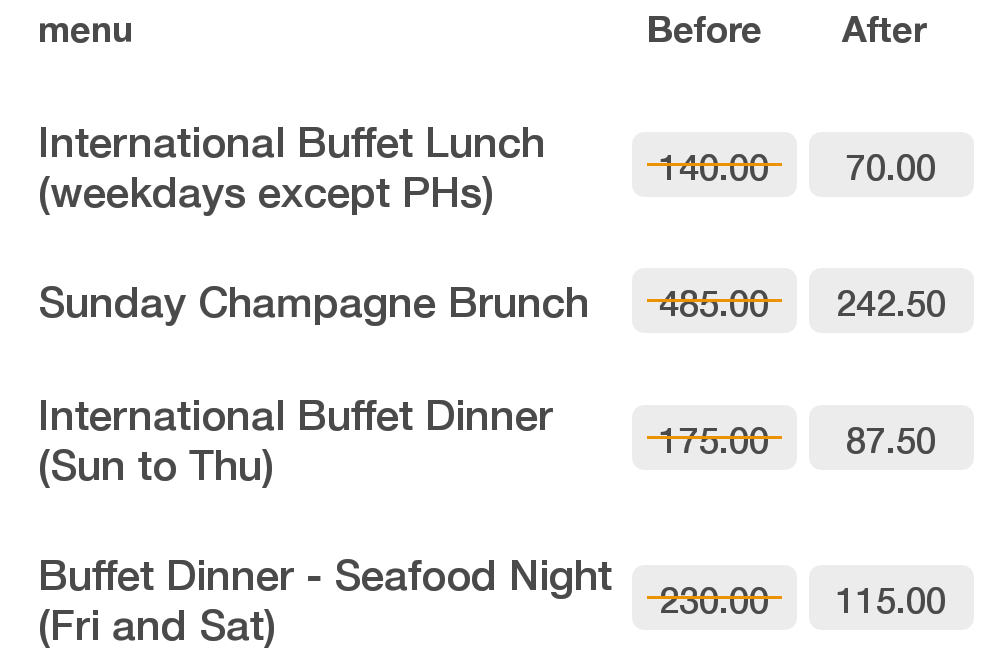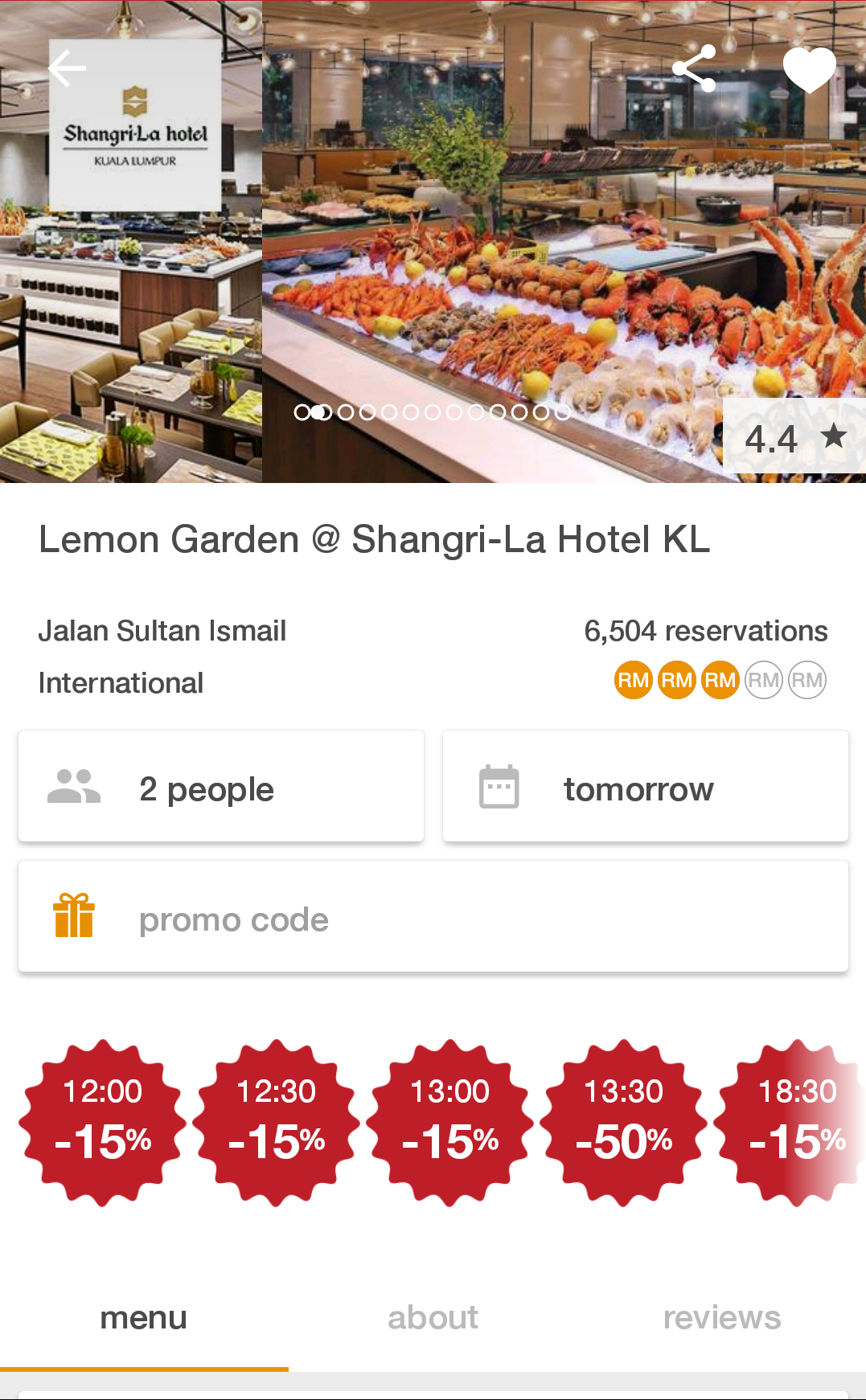 现在大优惠咯!!Lemon Garden @Shangri-la Hotel 折扣高达50%呢~也就是半价呢! 而且不同时间段也有不同的折扣!15%, 35%, 50% 都有!哇~感觉超值得的说~