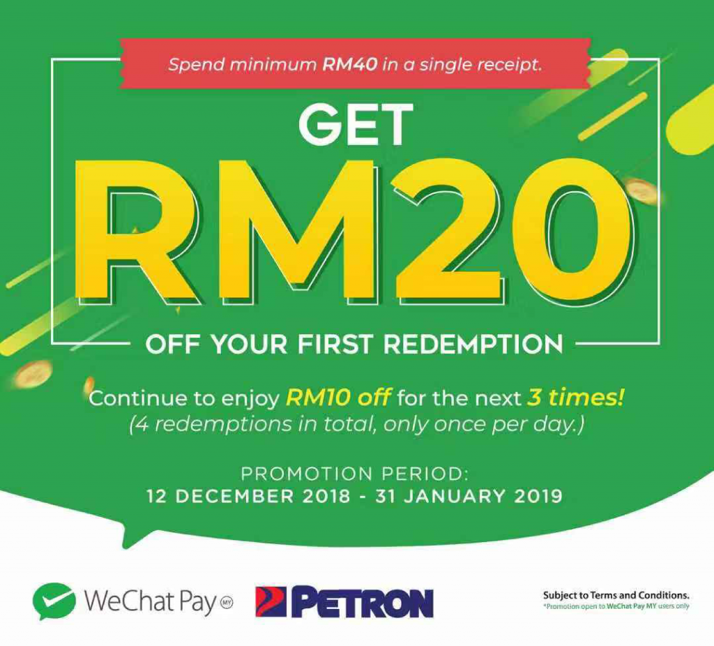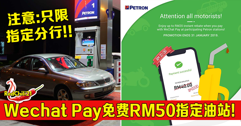 Wechat Pay免费RM50指定Petron油站出炉啦!