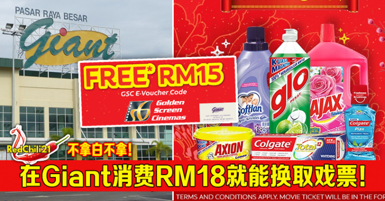 促销活动:大马Giant消费特定品牌产品RM18或以上就能换取一张免费价值RM15的电影票。