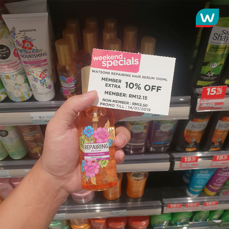 ▼DWatsons Repairing Hair Serum 原价RM13.50, 折扣后RM12.15