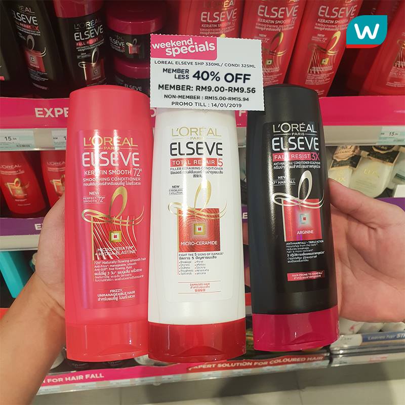 ▼Loreal Elseve 原价RM15.00~RM15.94, 折扣后RM9.00~RM9.56