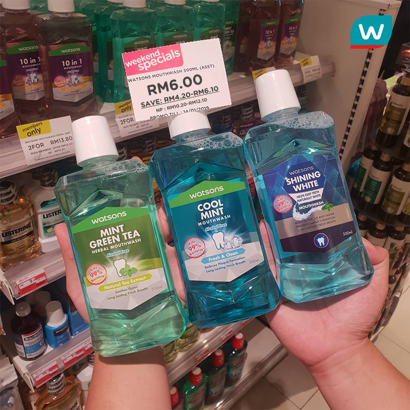 ▼Watsons Mouthwash 原价RM10.20~RM12.10, 折扣后RM6.00