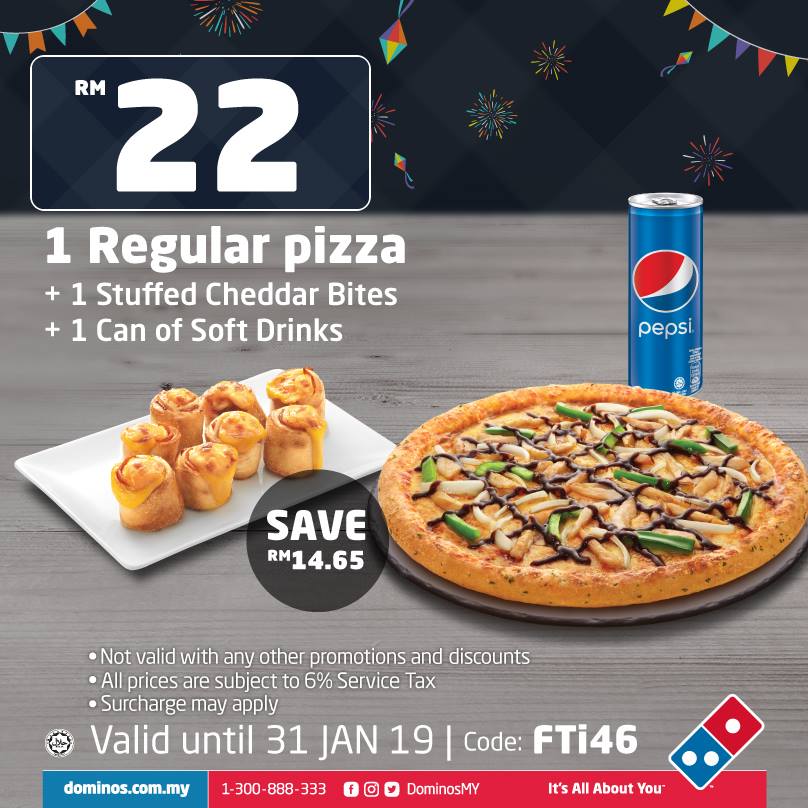▼FTi46 – 1 Piza Sederhana + 1 Stuffed Cheddar Bites + 1 Tin Minuman Ringan pada harga pada harga RM22