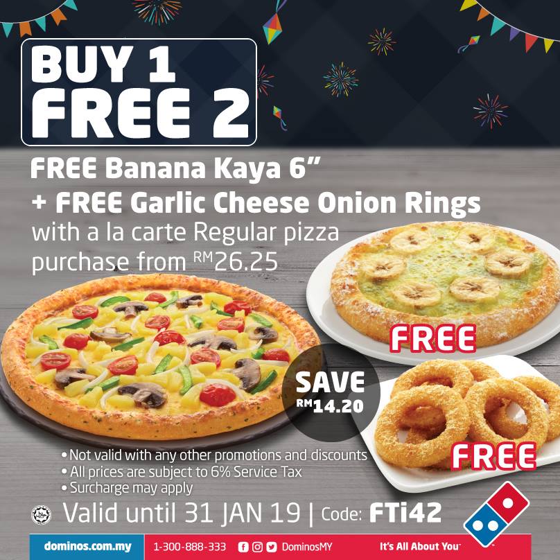 ▼FTi42 – BELI 1 PERCUMA 2: Banana Kaya 6″ + Garlic Cheese Onion Rings PERCUMA dengan pembelian a la carte Piza Sederhana