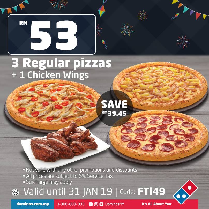 ▼ FTi49 – 3 Piza Sederhana + 1 Chicken Wings pada harga RM53