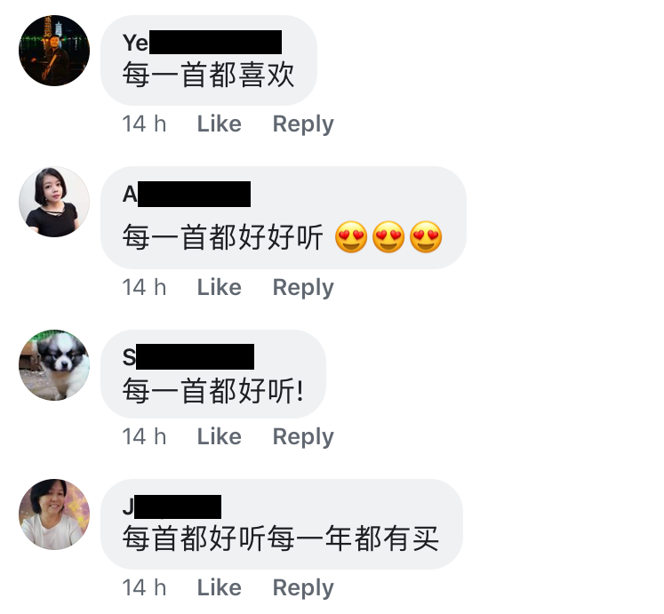▼民众朋友也纷纷留言表示每一首都好好听好喜欢。