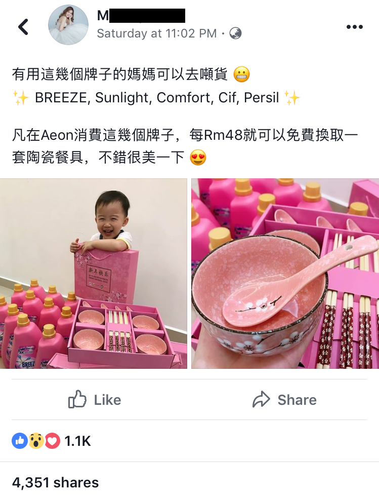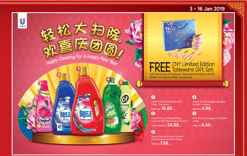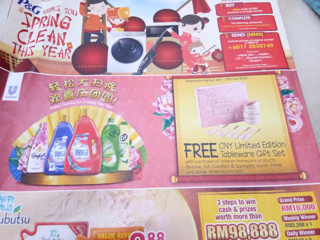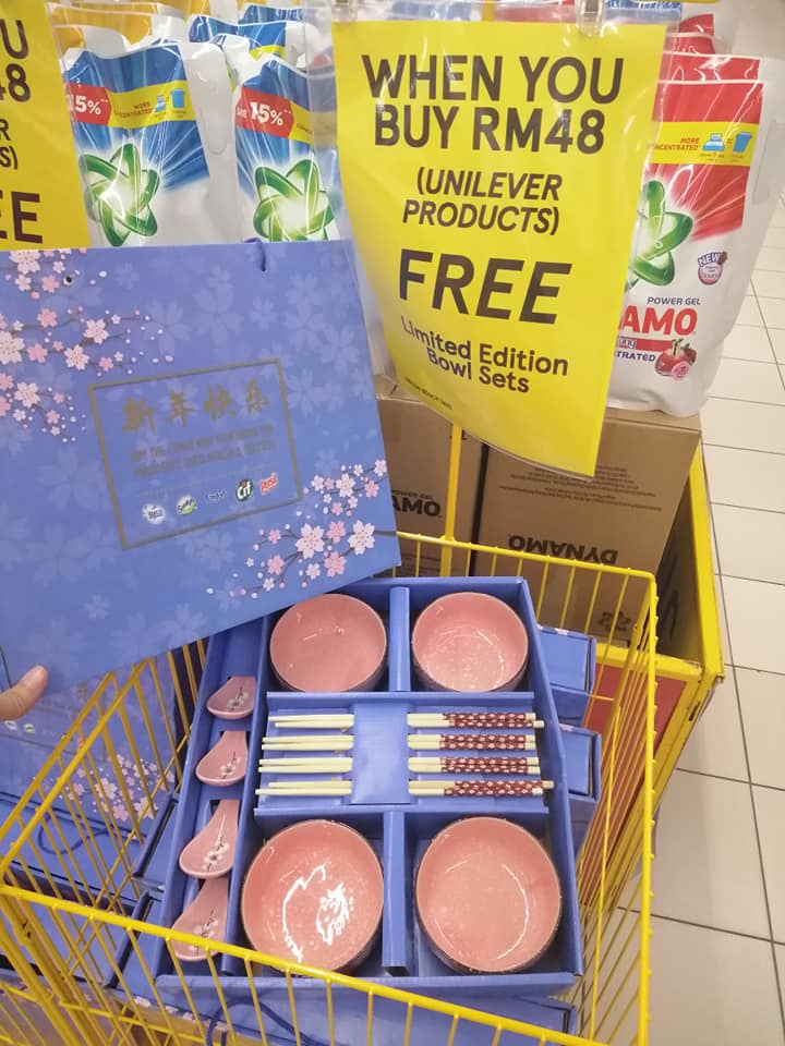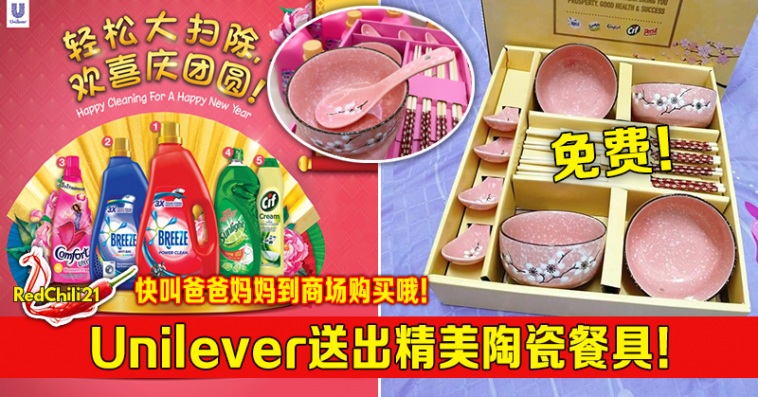 每逢新年期间,很多商家都会送出赠品来回馈给顾客。所以今年大马Unilever推出了一套精美餐具,只需购买指定的商品RM48或以上就能免费获得直到送完为止。