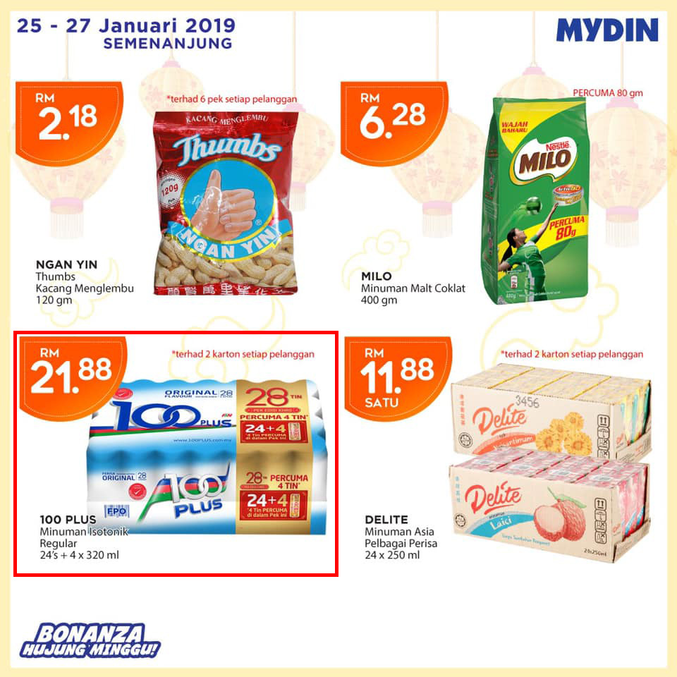▼万众期待的28罐装100Plus只需RM21.88但每人一次只限买2箱。