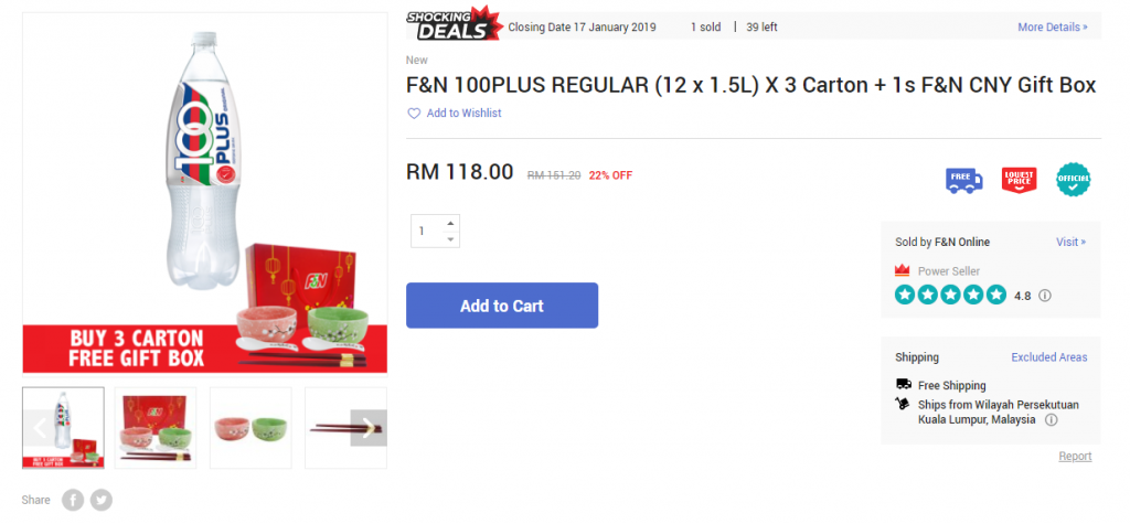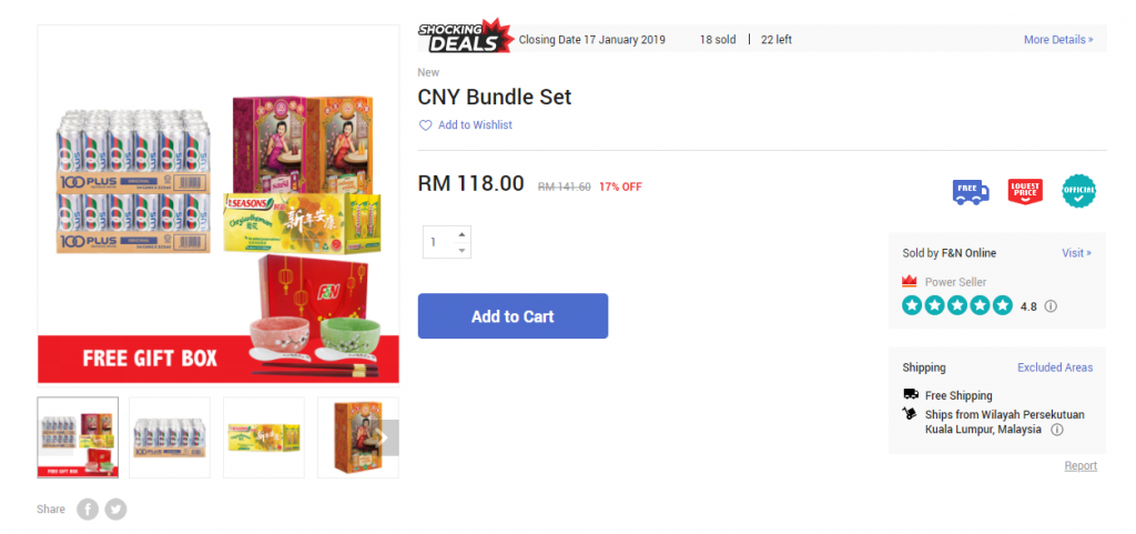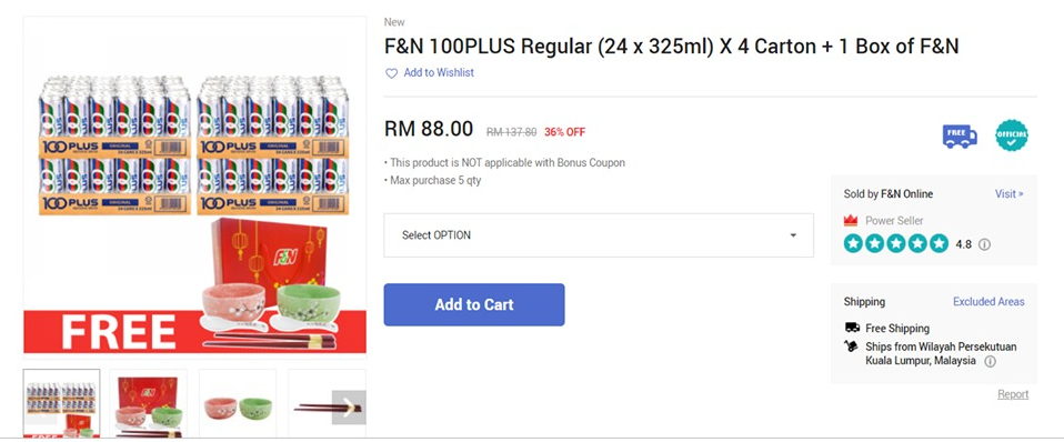 但必须注意的是F&N网店只派送到KL, Johor和Penang
