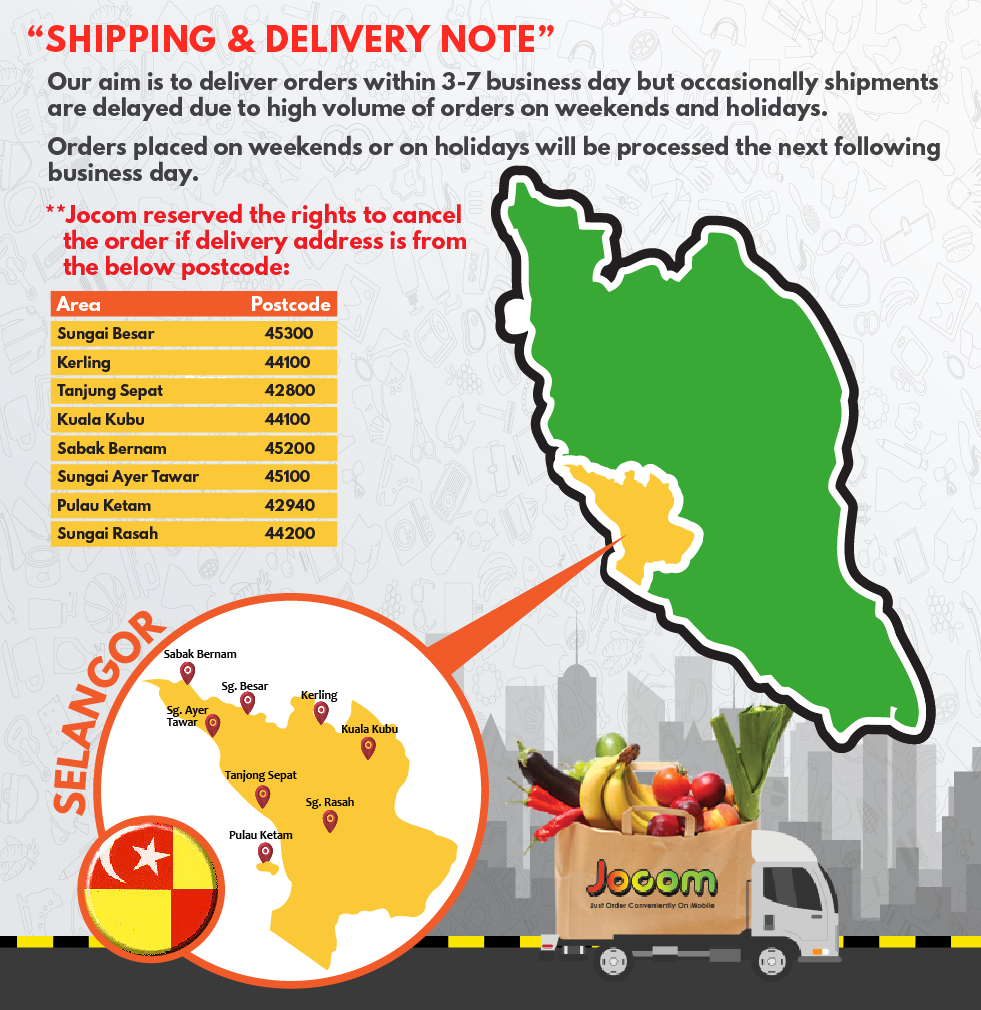 ▼如以下Selangor的邮编是不包送的。