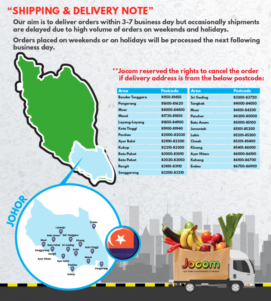 ▼如以下Johor的邮编是不包送的。