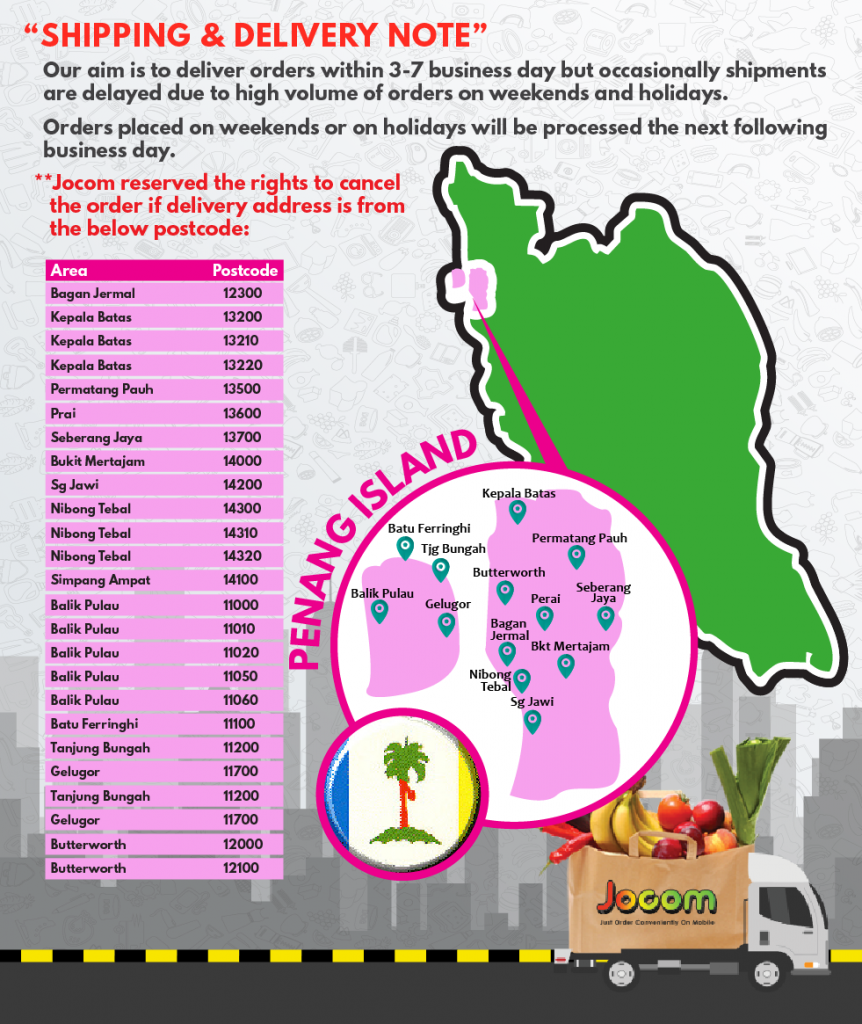 ▼如以下Penang的邮编是不包送的。