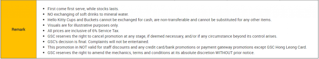 • 此促销活动不适用于员工折扣和任何信用卡/银行促销或支付网关促销,但GSC Hong Leong卡除外。