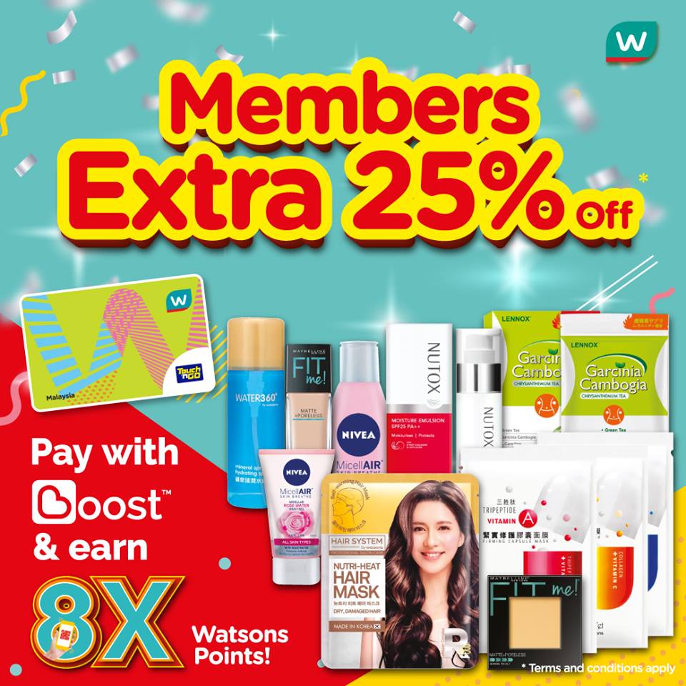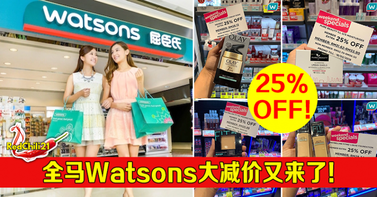 促销活动:Watsons 周末特别促销:会员额外 25% 折扣