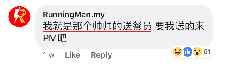 ▼至于单身的男生们都留言询问有没有女的外卖员,似乎也想这样就订出感情来!