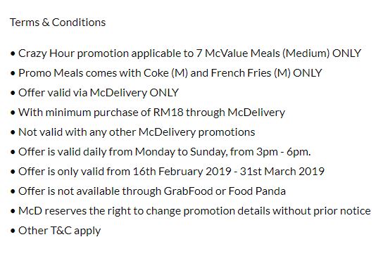 促销活动:Mcdonald’s Mcdelivery Crazy Hours(麦当劳外送疯狂时刻)