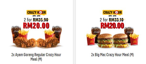 ▼ 2x Big Mac Crazy Hour Meal (M) 现在是 RM20.00(原价 RM33.10)!
